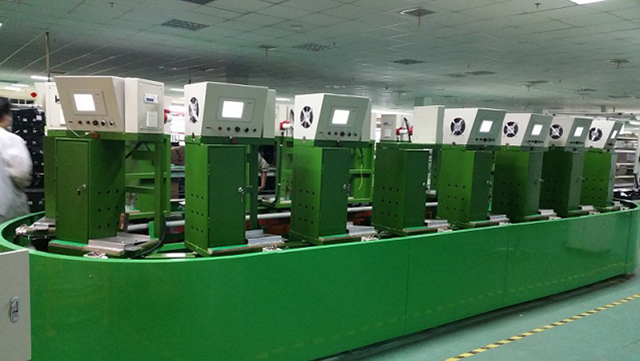 此環(huán)形檢測線是我公司為蕪湖格力電子分廠變頻外機(jī)DCT測試特別研制的。線體采用地軌鏈驅(qū)動,滑觸線供電,結(jié)構(gòu)緊湊,共18個(gè)工位,長寬只有 7100mm*2400mm;操作方便,分別在一個(gè)上件點(diǎn)和一個(gè)下件點(diǎn)提供人力即可完成作業(yè),將原來的分散間斷作業(yè)改為連續(xù)作業(yè),以系統(tǒng)自動運(yùn)行保障生產(chǎn) 節(jié)拍和產(chǎn)量的完成,提高了勞動生產(chǎn)效率。