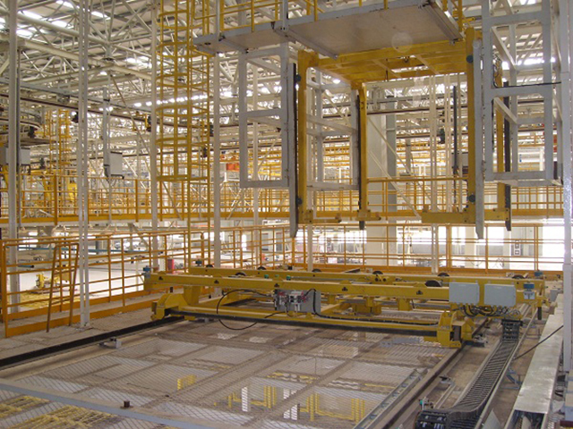 此項目為滑撬線體加移載小車和升降機,將涂裝車間的車頭移載到存儲區(qū),根據總裝需求再移載下降到地面總裝。